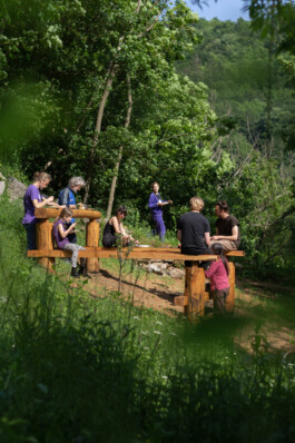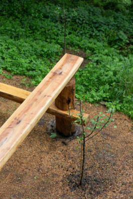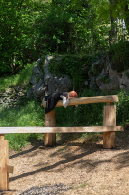Log was built on a former agricultural terrace. Its form responds to the sloped terrain, creating varied heights and orientations. It invites different gestures: to sit, lean, gather, rest, observe. Depending on how one approaches it, Log becomes a bench, a table, a stage — or simply a place to be.